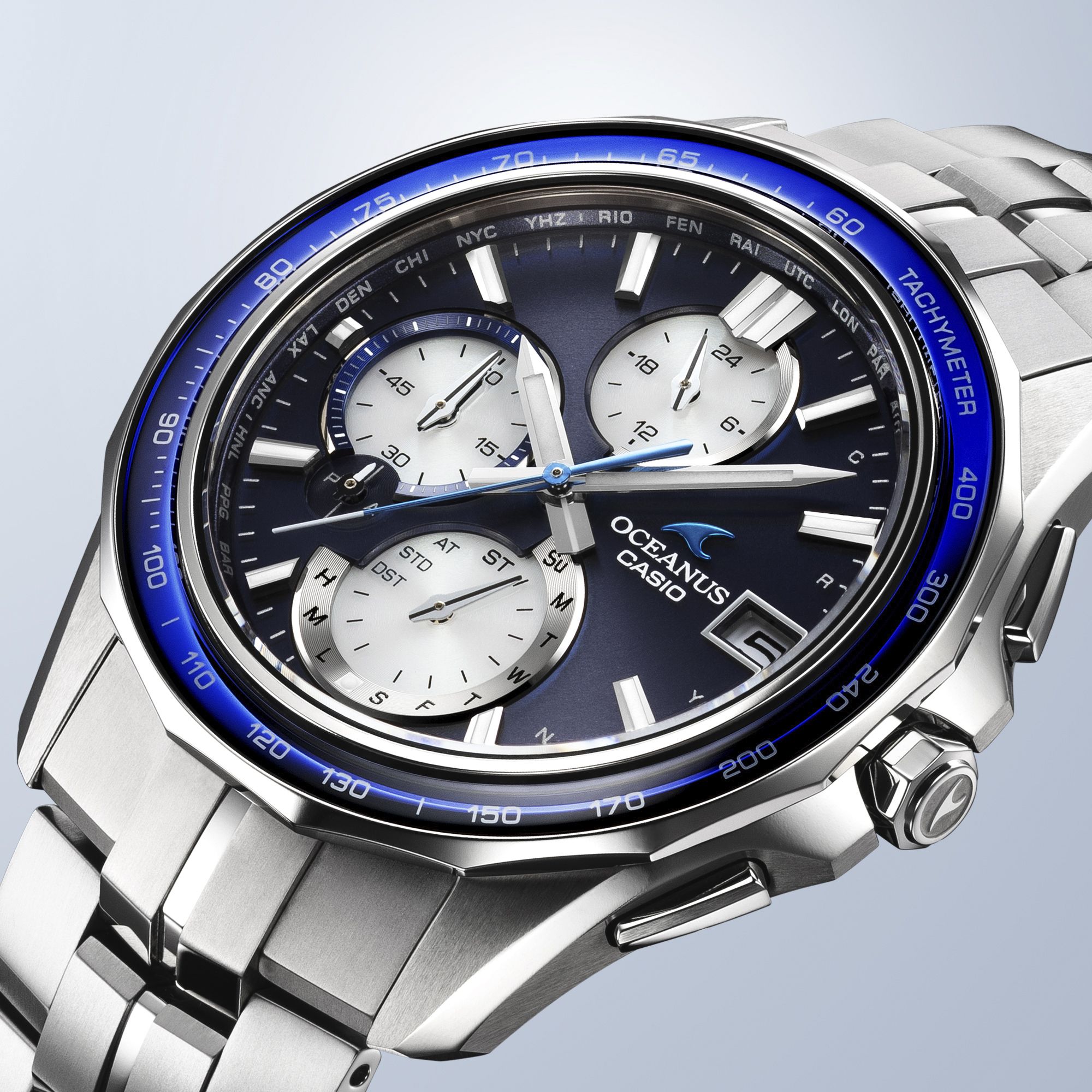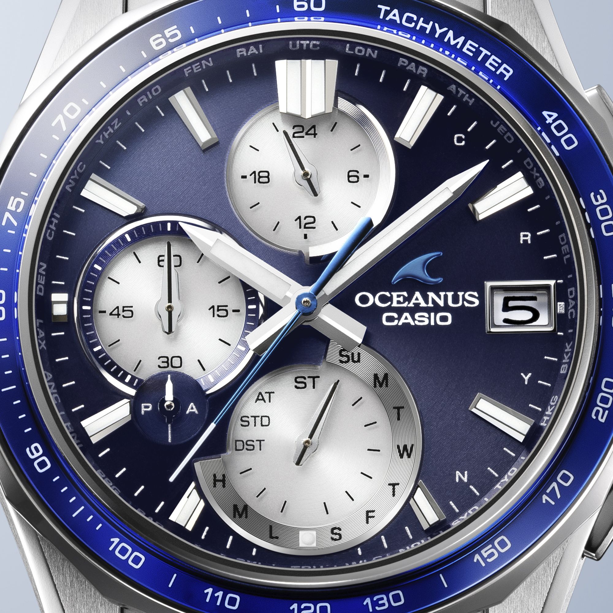 Manta 商品番号 OCW-S7000F-2AJF ムーブメント ソーラー電波時計/Bluetooth ケースサイズ 47.5 × 42.8 × 9.5 mm 防水性能 10気圧 他特徴 価格 ¥220,000 上質な仕上げと薄く美しいフォルムを追求しているOCEANUS Mantaラインより、OCEANUSのブランドカラーであるブルーと上質なホワイトを採用したモデルです。 海を感じられるブルーと美しい輝きを放つ上質なホワイトのインダイアルを採用した爽やかなカラーリングが特徴です。インダイアルは不透過のホワイト蒸着により、高発色で輝度の高いホワイトに仕上がっています。 また、メインダイアルとベゼル上のサファイアには、トーンを合わせたブルー蒸着を採用し、ブルーとホワイトのバイカラーでOCEANUSらしい爽やかなモデルに仕上がっています。 オンラインショップで購入する ローンシミュレーション この商品についてお問合せ