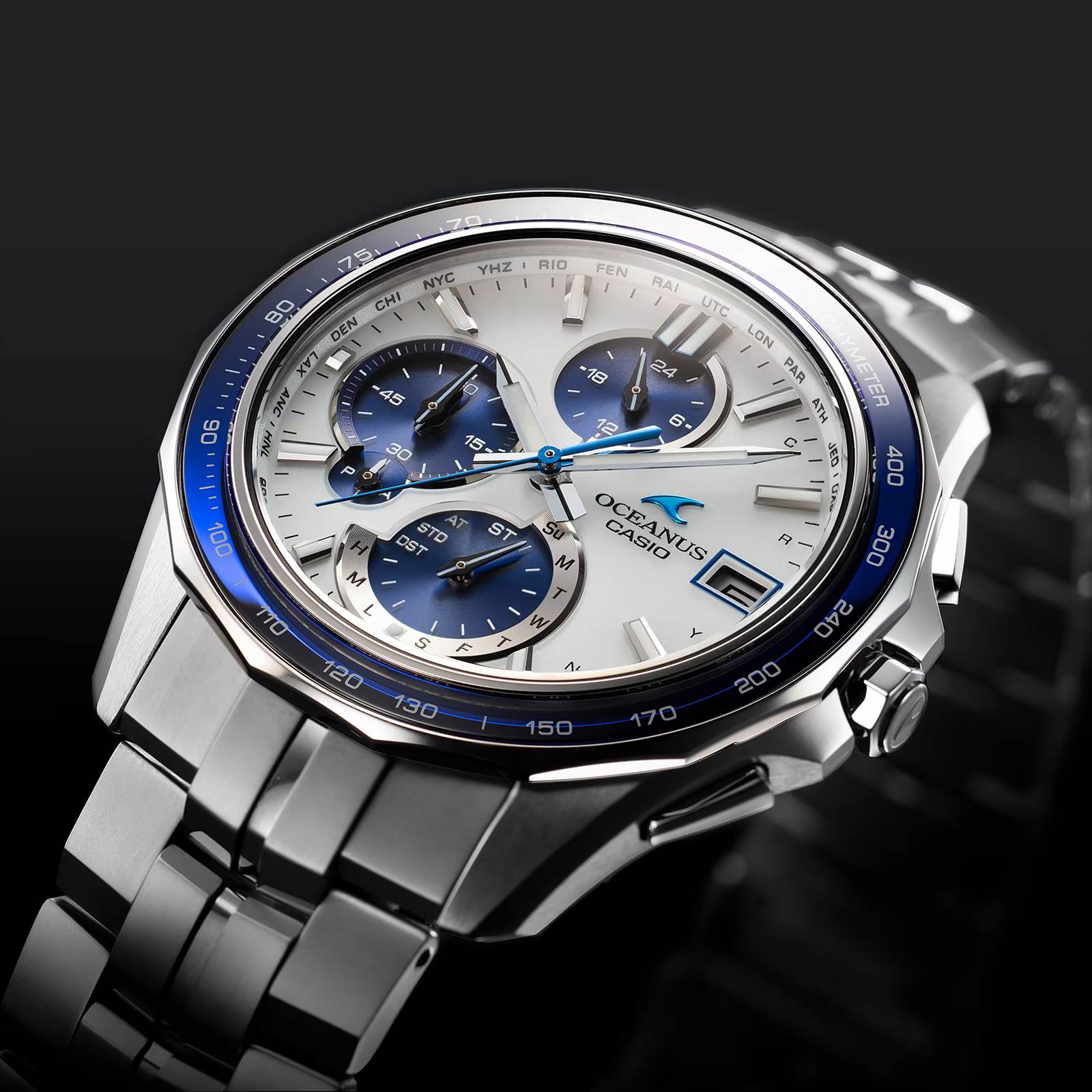 Manta 商品番号 OCW-S7000D-7AJF ムーブメント ソーラー電波時計/Bluetooth ケースサイズ 47.5 × 42.8 × 9.5mm 防水性能 10気圧 他特徴 モバイルリンク機能 価格 ¥198,000 “Elegance, Technology”をブランドコンセプトに、上質な仕上げと薄く美しいフォルムを追求しているOCEANUS Mantaより、上質なホワイトをデザインに採用したモデルです。 海を感じる爽やかでスポーティなカラーをデザインで取り込みました。メインダイアルに美しいホワイトを、インダイアル部に透過性のあるブルー蒸着を採用。ベゼル上のサファイアガラスにもブルー蒸着を施しています。 標準電波受信機能による時刻修正に加え、スマートフォンリンクによる時刻修正機能などを搭載。これらの高機能を厚さ9.5mmのスリムケースに収め、薄く美しいフォルムも実現しました。 ローンシミュレーション この商品についてお問合せ